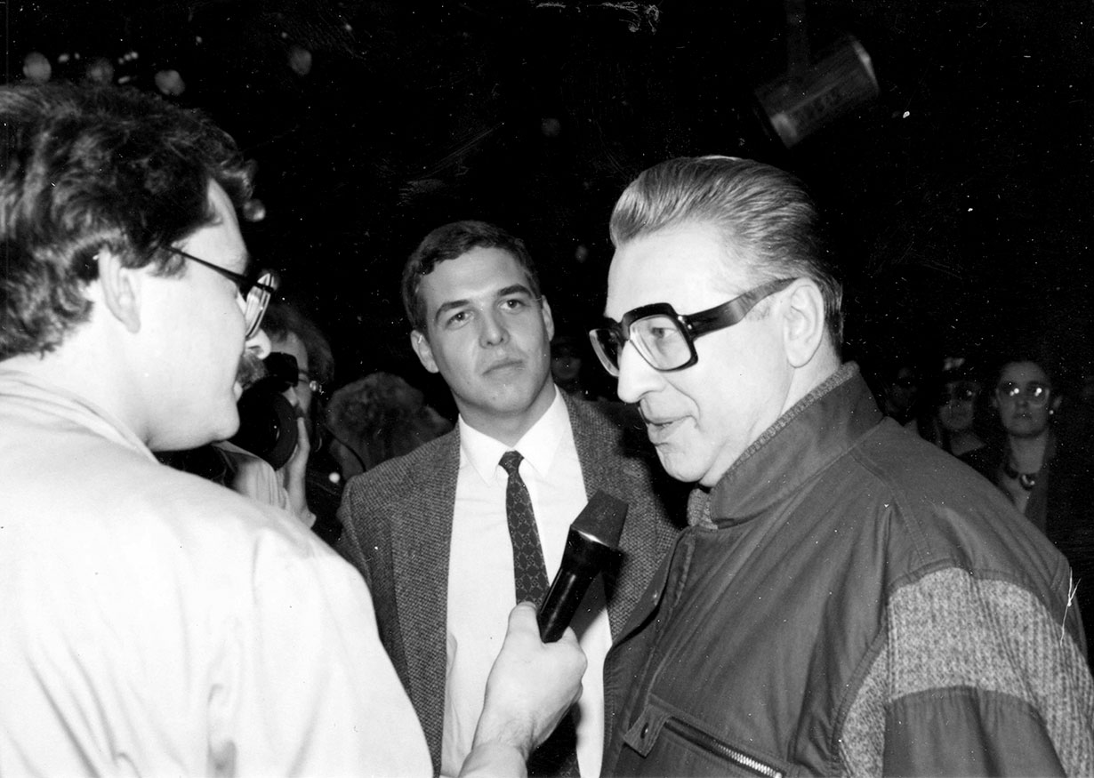 «С нами отчаянно боролись. В Риге за сутки до эфира провокатор подскочил ко мне в гостинице и ударил бутылкой по голове. Работал в эфире с огромным синяком, который мгновенно сполз на лицо, поэтому свет ставили очень контрастный. Во время прямого эфира загорелся телецентр, отключили свет в студии, приехали пожарные, от нас требовали остановить эфир, но мы продолжали в кромешной тьме и дыму, все-таки эфир остановить не решились. Впрочем, по результату все остались живы, а Владика Листьева убили уже в демократической России в 1995 году», – Александр Любимов.