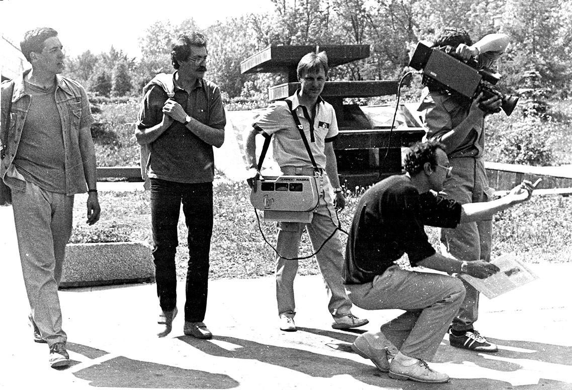 «Как-то мы снимали в одном торговом центре в Швеции, и Разбаш с Демидовым придумали, что мой длинный комментарий будет записан синхронно, но за кадром, а камера в это время будет ко мне приближаться и в конце концов «выйдет» на мой крупный план. Такого мы никогда не делали. Настоящий адреналин. Но когда, наконец, камера «вышла» на мой крупный план, я вообще чуть не потерял самообладание. Мои родные еще и поставили Разбаша с камерой на скейтборд, а Ваня его аккуратно двигал в мою строну. У нас же не было тогда ни стедикамов, ни обычных операторских тележек. Мы даже скейтборд впервые увидели», – Александр Любимов.