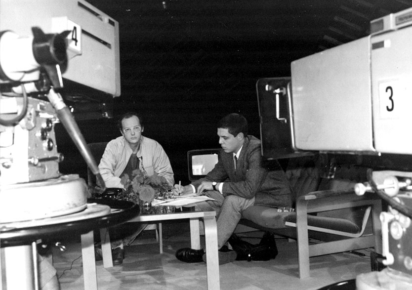 «Взгляд»: Начало«Главное, что произошло, когда мы делали «Взгляд», – это выбор ведущих. Нужны были молодые, неиспорченные телевизионной славой ведущие, молодые новые лица, потому это новая программа, новое телевидение. Андрей Шипилов, который недавно перешел к нам с Иновещания, как-то рассказал, что там есть несколько интересных парней. И когда они вошли, я сразу понял, что это «то». Потому что они держались совершенно нагло, чуть ли не ноги на стол положили. Они чувствовали себя элитой, золотой молодежью, но печати испорченности на их лицах я не увидел, сразу было понятно, что это интеллектуалы. Девять языков на четверых. Моими кумирами были «Битлз», и я увидел, что в мой кабинет вошли «Битлз», великолепная ливерпульская четверка, и что как минимум надо их попробовать… Я сейчас даже не помню, каким был первый сюжет, мне кажется, сначала была важнее атмосфера – когда в этой кухне сидят четверо молодых людей и просто о чем-то разговаривают, на другом языке говорят, о других ценностях», – Эдуард Сагалаев.