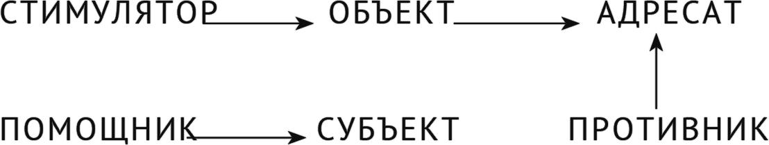• Адресат: тот, кто принимает объект (добивается своей цели), – как правило, сам субъект.