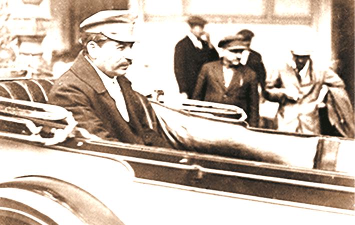 И. В. Сталин в автомобиле у Большого театра, после закрытия XVI съезда ВКП(б). 1930. [РГАКФД]