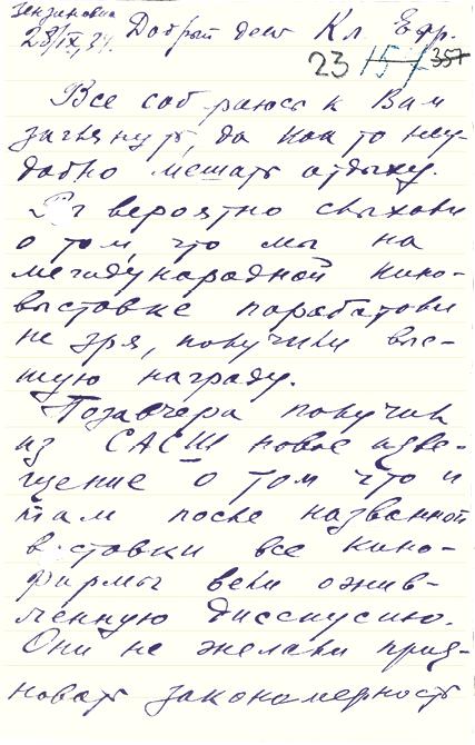 Подлинник. Автограф Б. З. Шумяцкого. 28 сентября 1934. [РГАСПИ. Ф. 74.Оп 1. Д. 293. Л. 23–23 об.]