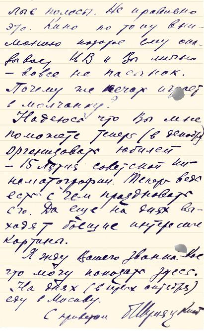 – Мало, мало и мало! – кипятился Шумяцкий. – Надо еще восемьдесят. Я пришлю конкретную записку.
