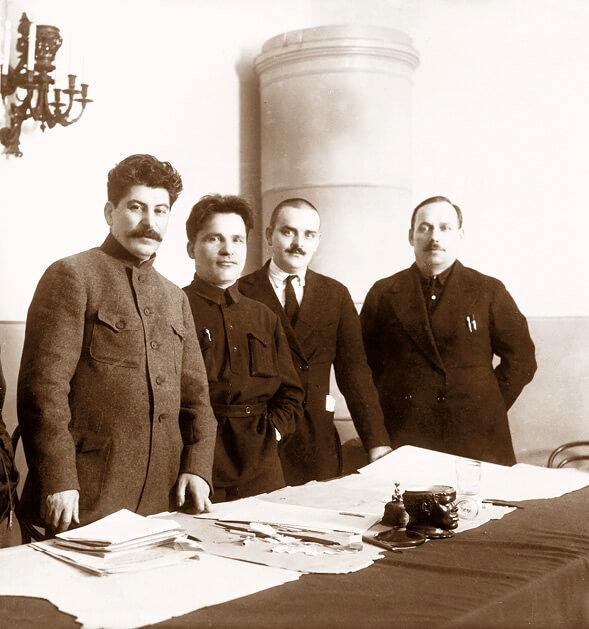 И. В. Сталин, С. М. Киров, Н. М. Шверник, Н. П. Комаров. 1926. [РГАСПИ. Ф. 558.Оп 11. Д. 1652. Л. 10]