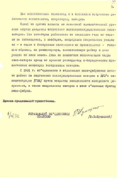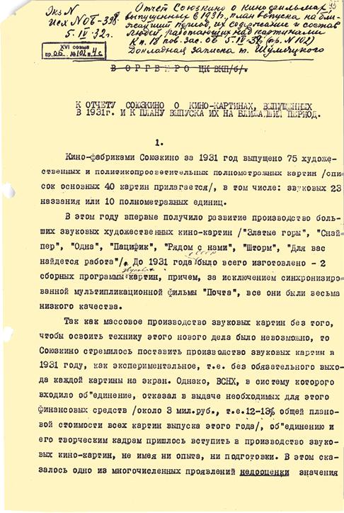 Отчет Б. З. Шумяцкого о работе Союзкино в 1931 году. 4 апреля 1932