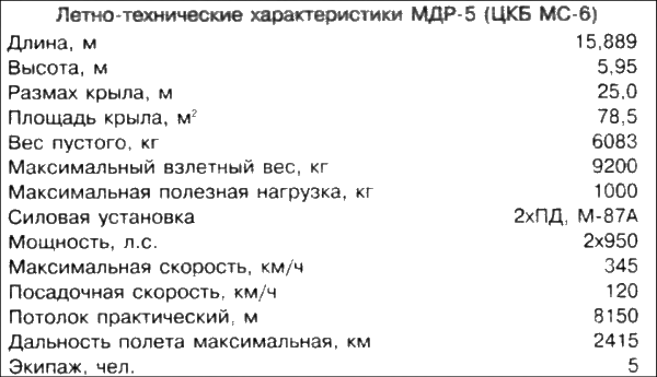 В целом отмечалось, что МДР-5 вполне удовлетворяет заданным тактико-техническим требованиям (см. таблицу).