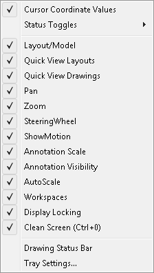 Вы можете видеть список из описанных выше команд, рядом с каждой из которых расположен флажок, показывающий, выведена ли соответствующая кнопка на строку состояния.