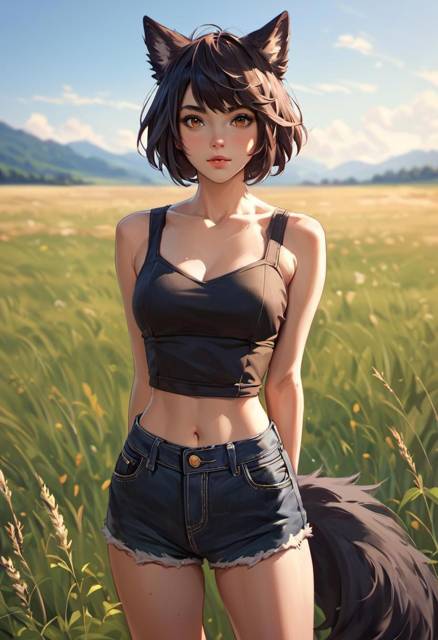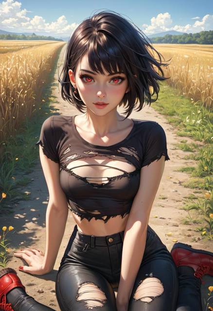 Спустившись с пригорка, девушка медленно сняла рюкзак и накидку, открывшись нам. Короткие шорты, черная кофта. Она довольно низкая, будто совсем еще юная.