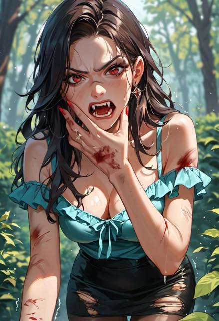 Не понимая, что сейчас произошло, услышал шум уже за спиной Эриндольфа. Из-за внезапной атаки, он не успел отреагировать. Из кустов выпрыгнула моя дорогая вампирша. Она повисла на шее охотника и внезапно впилась в его шею, пустив кровь. Вскрикнув и схватив девушку за волосы, Эриндольф сбросил ее. Алисия тут же отпрыгнула подальше, оскалившись.