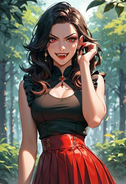 Только подумал об этом, как Люси заняла боевую позу. Хвост распушился, уши навострились, когти вытянулись. А затем из-за одного дерева вышла она – моя дорогая вампирша. Помимо изысканного наряда, в глаза бросаются сверкающие глаза, длинные клыки и красные заостренные ноготки. Она встала метрах в десяти от нас, продолжая улыбаться. Только сейчас понял, что я не узнаю ее. Это не моя девочка, а что-то другое.