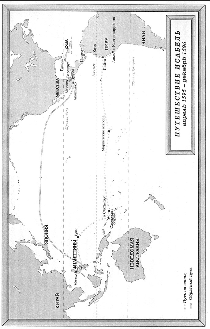 Всего от Кальяо до Акапулько через Маркизские о-ва, о. Санта-Крус и Филиппины – больше 5 390 лиг (больше 34 000 км).