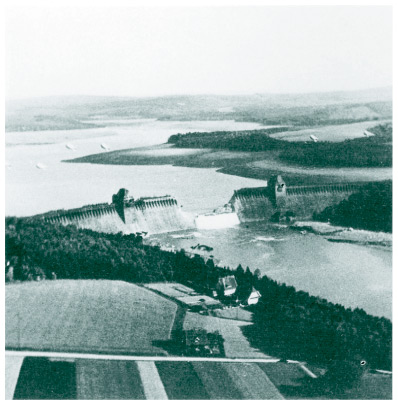 «Мы видели, как бурлящая и клокочущая масса воды рвалась сквозь пробоину и рушилась вниз. Мы видели, как вниз по долине помчались шесть огромных волн. Для начала они смели здание электростанции. Мы увидели, как тут же погасли огни в соседних деревнях, словно огромная черная тень накрыла долину. Водяная стена мчалась вперед, словно курьерский поезд. Мы знали, что в нескольких милях отсюда находится крупная тренировочная база Люфтваффе. Это был большой современный аэродром с массой построек, в том числе подземными ангарами и подземными казармами»80, – так писал в мемуарах Гай Гибсон, командовавший 617-й эскадрильей, которая получила почетное наименование «Разрушители плотин».