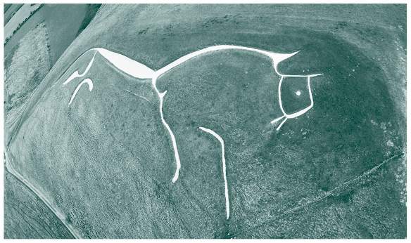 Как и в случае с Бирмингемом-Дэйлом, мы из далеких далей возвращаемся назад, в Англию. Том Шиппи пишет, что народ Теодена напоминает англосаксов вплоть до мельчайших деталей (разумеется, за исключением того, что они не были всадниками). Но в их культуре образ коня представлен более чем ярко: это имена их вождей Хенгеста и Хорсы (в переводе с древнеанглийского «жеребец» и «лошадь»), это конь как эмблема Саксонии. Но откуда взялся белый конь на зеленом поле? Это Уффингтонская белая лошадь, геоглиф, то есть огромное изображение (ее длина более ста метров), занимающее склон холма в Оксфордшире. Она на полторы тысячи лет старше англов и саксов, время ее создания – бронзовый век. Глядя на этот величественный памятник доисторической древности, который сохранялся столько веков (без прополки она заросла бы травой), начинаешь понимать, почему Профессор в своем мире мыслил тысячелетиями.