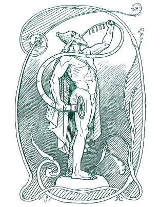 Один с двумя воронами. Иллюстрация Людвига Пича из книги Александра Мюррея «Руководство по мифологии». 1874 г.