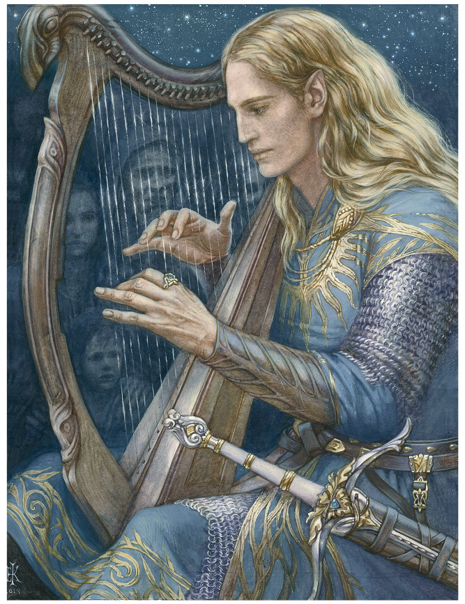 Аналогичный эпизод есть и во «Властелине колец», когда Фродо заточен в башне Кирит-Унгол и Сэм тщетно ищет его. Хоббит, в отличие от эльфийского принца, не взял с собой арфу, но в главном сюжеты совпадают, в том числе и во взаимном расположении друзей (пленный находится высоко наверху). Обратим внимание и на роль хоббитских песенок в преодолении сил мрака: «И тут, после всех напрасных поисков, во мраке отчаяния, Сэм, к собственному своему удивлению, начал тихонько петь. Голос у него был тонкий и дрожащий – голос одинокого, усталого, отчаявшегося хоббита, который ни один случайный орк не спутал бы с пением эльфийского воина. Он мурлыкал старые детские песенки, отрывки из песен, сочиненных Бильбо, мелькавшие у него в мыслях, как мимолетные видения родной страны. А потом в нем вдруг поднялись какие-то новые силы, голос окреп, и неожиданно родились свои собственные слова, слившиеся с незатейливой мелодией…».