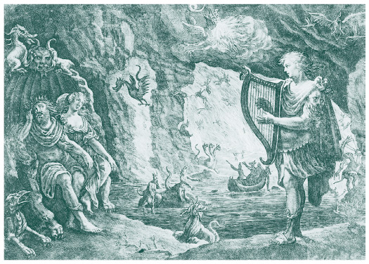 Орфей в аду. Гравюра XVII в., приписывается ван де Пасс.