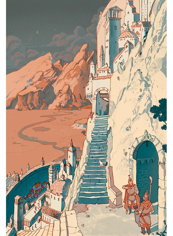 Южнее расположены Белые горы – это обобщенный образ высоких гор юга Европы – Апеннин, Балкан, Пиренеев. Гондор же сам Толкин в письме к Мильтону Уолдману характеризовал как «нечто вроде надменной, освященной веками, но все более беспомощной Византии». Добавим, что, хотя прямо отождествлять Минас-Тирит с Константинополем нельзя (по географическому положению ему скорее соответствует Пеларгир), оба великих города находятся в правобережье главной реки своей страны – Андуина и Дуная соответственно.