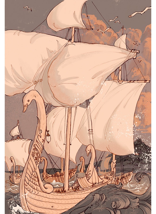 Если мы внимательно посмотрим на историю Средиземья, то обратим внимание, что для Толкина значимое изменение в судьбах народов всегда связано с тем, что некие герои приплывают. Обратим внимание, что история Третьей эпохи – это история весьма немалого материка, протяженного на восток далеко за пределы карты (так, о Мордоре в «Сильмариллионе» говорится, что он был «далеко от основных владений Саурона на Востоке», при этом Мордор весьма значителен по территории, и остается лишь давать волю воображению, пытаясь представить размеры основных владений Врага). Но несмотря на то, что количественное заселение земель шло по суше, качественные миграционные события связаны с морем и кораблями.
