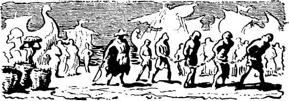 В порту длинной вереницей тянулись грузчики, разгружавшие трюмы кораблей. Они несли на плечах и на голове корзины и тюки с товарами на склады. Загорелые худые лица их были покрыты потом. От привычки носить на спине грузы они шли согнувшись, даже возвращаясь обратно от складов к причалам.