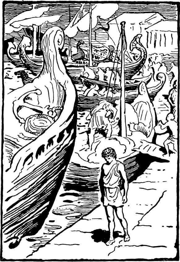 Тогда Архил решил снова пойти к причалу, возле которого остановился еще один корабль. У причала кипела работа. Архил остановился возле одного из кораблей.