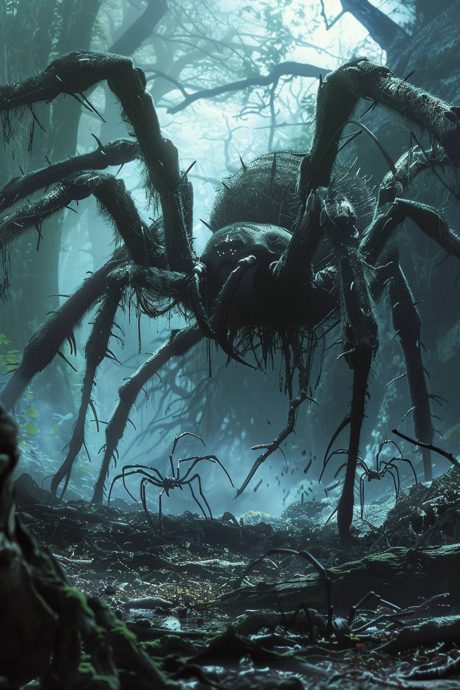 Раздалось потрескивание, верхушки деревьев пришли в движение. Чонсок поднял голову. К нему, алчно пощелкивая челюстями, полз один из обитателей леса. Воин сначала приготовился дать бой, а потом увидел ещё несколько огромных тел, что спускались на нитях паутины, по размеру, скорее, походивших на толстые канаты.