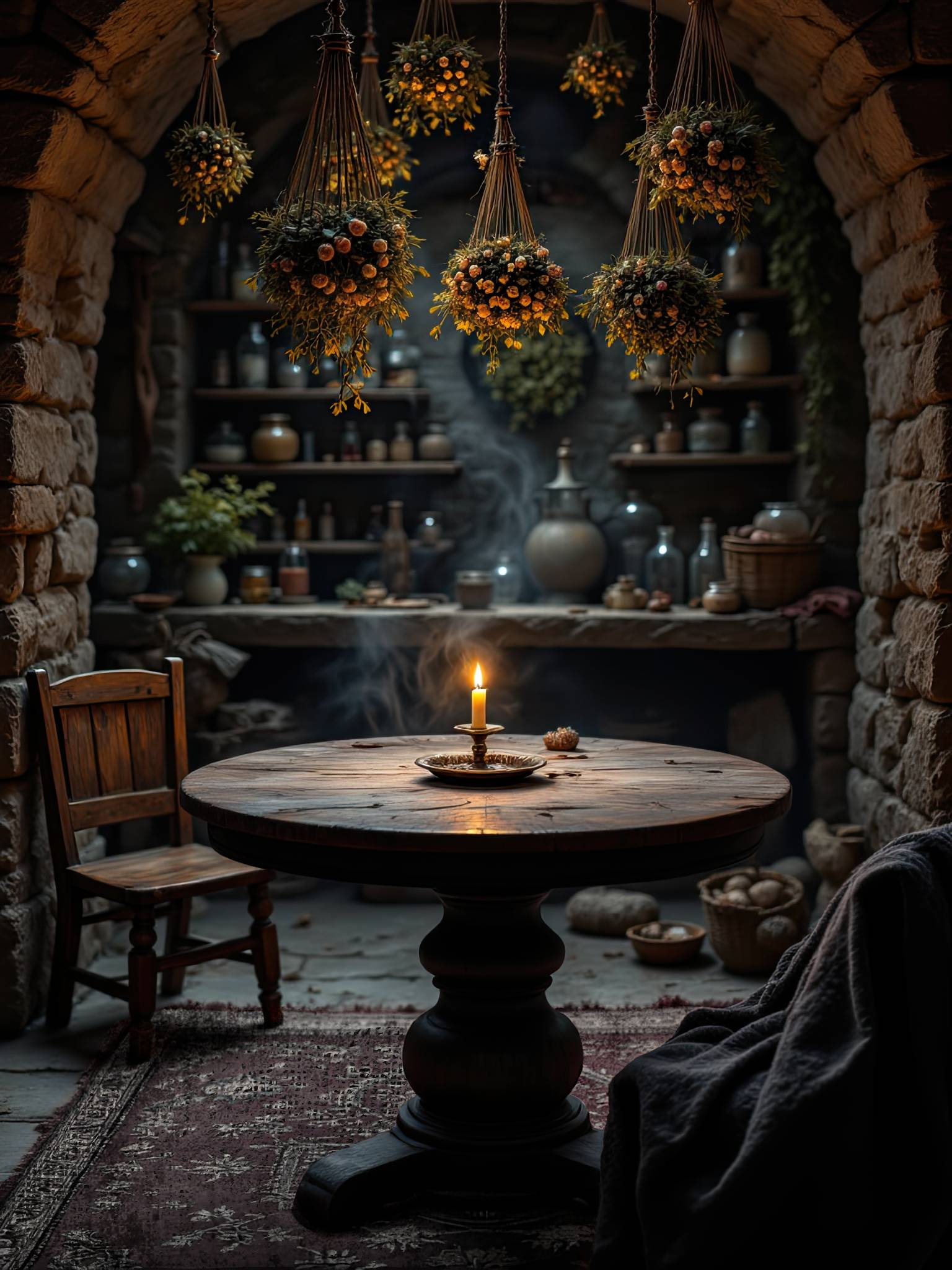 Тэруми прошла дальше, осматривая комнату. Удивительно, но за всё время, что жила в Изиме, в подземной части лечебницы не была и до рассказа Лайи не подозревала о существовании просторного помещения. Здесь было очень уютно. В воздухе витал аромат сушенных трав, а какие-то растения в горшках добавляли к этому горьковато-пряный запах. Это было похоже на смесь гвоздики, розмарина и чего-то ещё… Может, цитруса? Тэруми глубоко втянула носом пропитанный всем этим воздух и улыбнулась. Да, ей здесь определенно нравится. Ещё этот круглый стол и два стула, на одном из которых лежало теплое одеяло. Тэруми сразу же представила, как Лайя сидит здесь, кутаясь в одеяло, и медленно перетирает травы, наполняя их целебной силой. На душе стало тепло и спокойно.