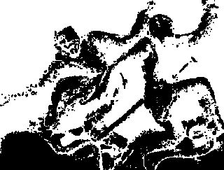 Илл. 109. Бронзовое изображение танцующих людей на змее; очевиден заклинателъный характер танца. Куньмин. Эпоха раннего Чжоу