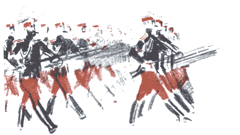 Из-за кургана вылетела лава вражеской конницы, поскакала на позиции дивизиона, сверкая клинками сабель.