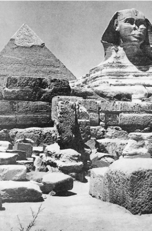В пирамидный комплекс входили также гробницы жен фараона, святилища, связанные с культом покойного «бога», и другие сооружения. Возле гизехских пирамид находится Великий Сфинкс – высеченная в скале огромная фигура с лицом фараона и туловищем льва. Лицо Сфинкса обезображено солдатами армии Наполеона, обстреливавшими его ради забавы во время египетского похода.