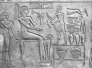 По представлениям египтян, покойный не переставал существовать, а лишь переселялся в иной мир. Задача его наследников состояла в том, чтобы на новом месте хозяин гробницы преумножил все то, чем он владел до своей кончины. Покойный сохранял все те потребности, которые были у него при жизни, поэтому его регулярно кормили и поили, принося поминальные жертвы. Некая сохранившаяся после кончины сущность человека жадно поглощала такую же сущность пищи, переданной умершему. В надписях мертвецу желали есть, пить и веселиться; ему предлагали, к примеру, 10 сортов мяса и 5 сортов птицы, 16 видов печенья и 4 сорта ячменного пива, всевозможные фрукты и сласти. Между написанным словом и вещью для египтян существовала магическая связь, и потому все это не было пустым пожеланием: что написано – сбудется! Иероглифы сопровождались наглядными иллюстрациями: на рельефах слуги несут на поминальный пир горы фруктов и огромную бычью ногу.