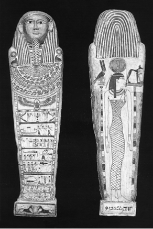 Сохранность внешнего облика покойного обеспечивалась также изготовлением портретной статуи, перед которой помещали поминальные приношения. Гроб (саркофаг) делали из камня, дерева или склеенного в несколько слоев папируса. Лицу покойного на саркофаге нередко придавали портретное сходство. Благодаря вере египтян в то, что душа мертвеца может вселиться в его изображение, возникло замечательное искусство египетского портрета. Поразительный «реализм» произведений древних мастеров тесно связан с магическими представлениями.