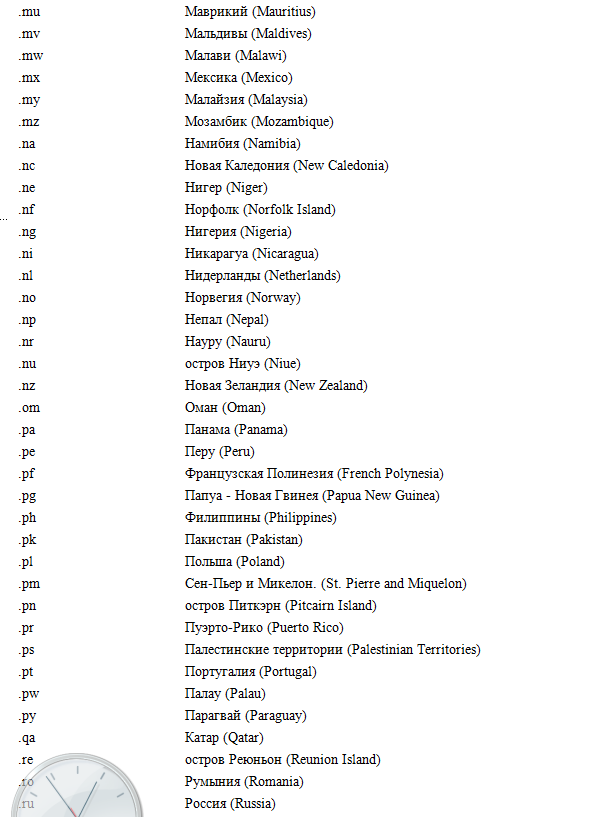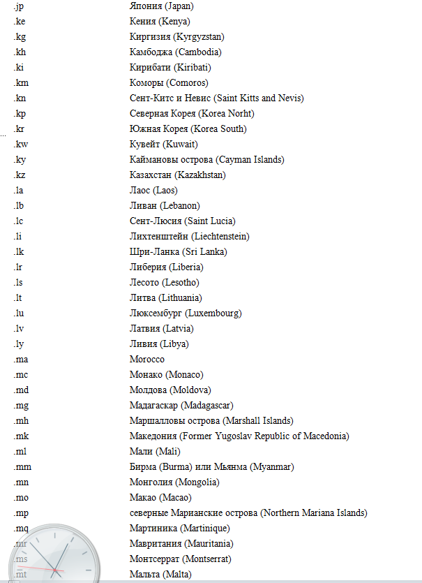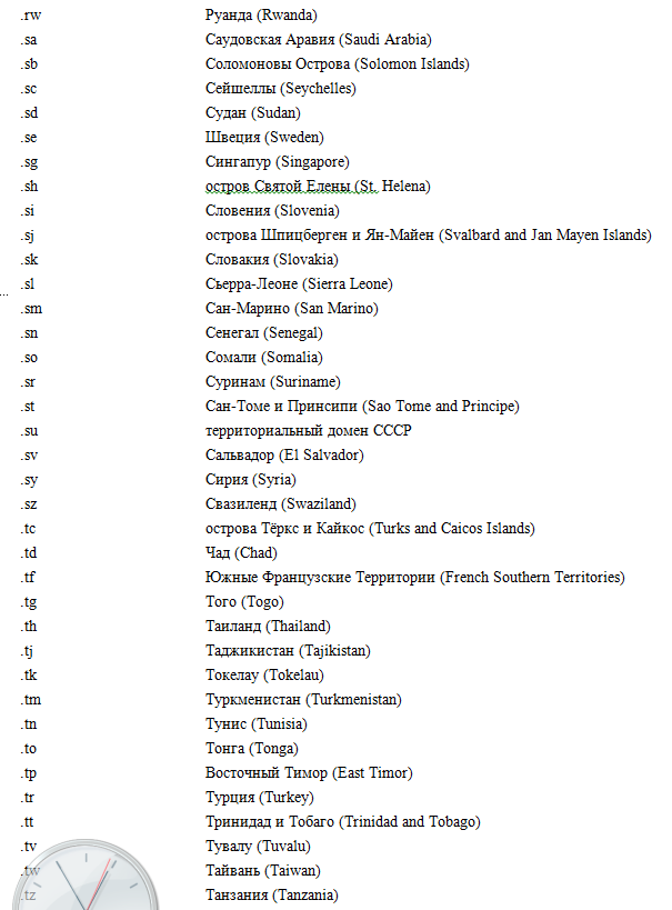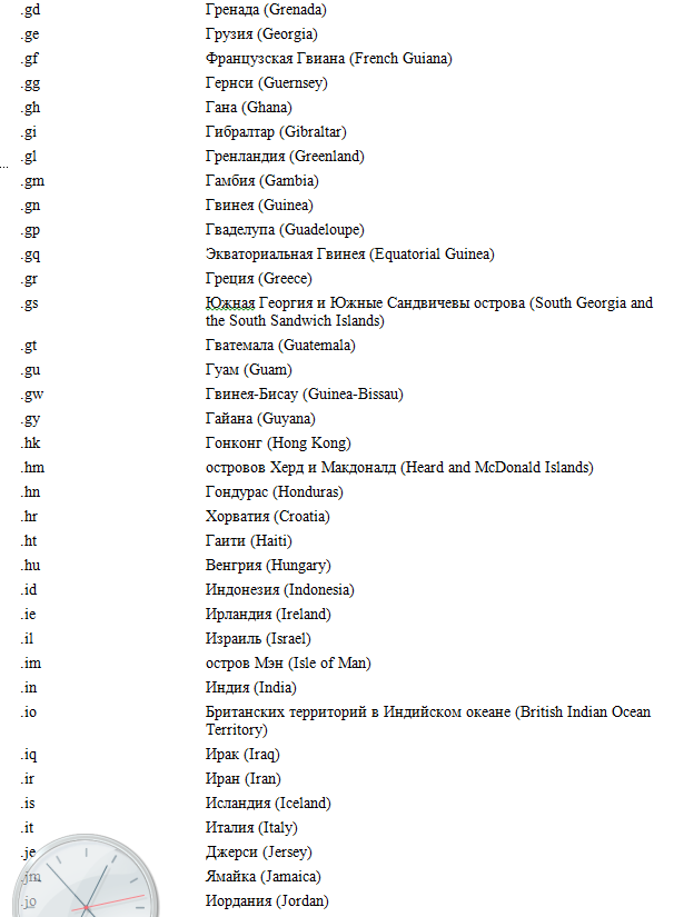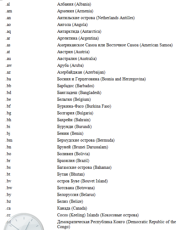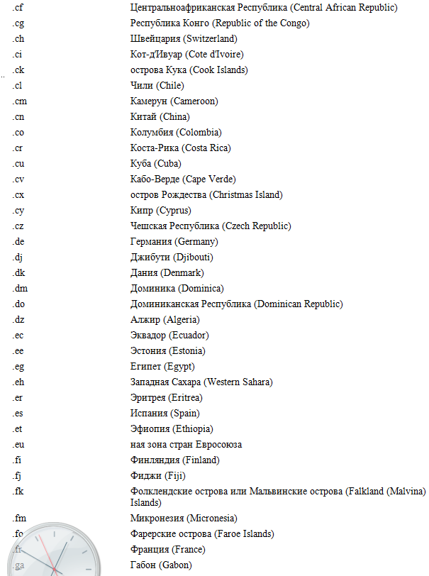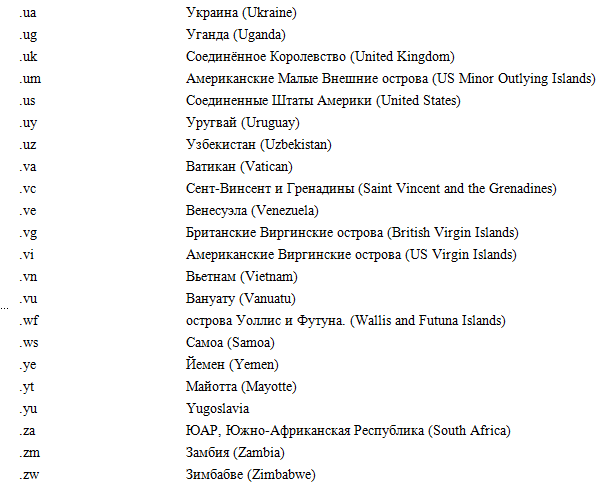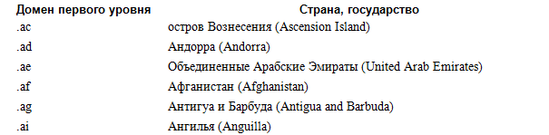 Что касается доменов первого уровня, характеризующих географическую принадлежность веб-ресурса, то они приведены в таблице 1.1.