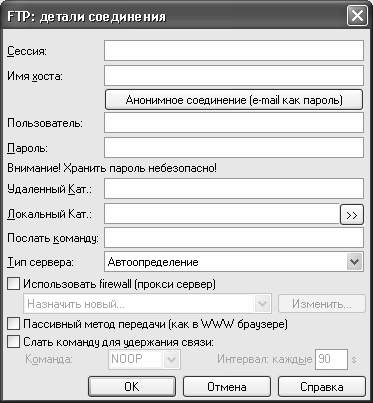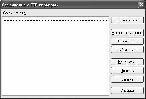 Для перехода в режим работы с FTP-соединениями выполните команду главного меню Сеть ► FTP-соединение(эта команда вызывается также нажатием комбинации клавиш Ctrl+F). При активизации данной команды на экране откроется окно, изображенное на рис. 1.3.