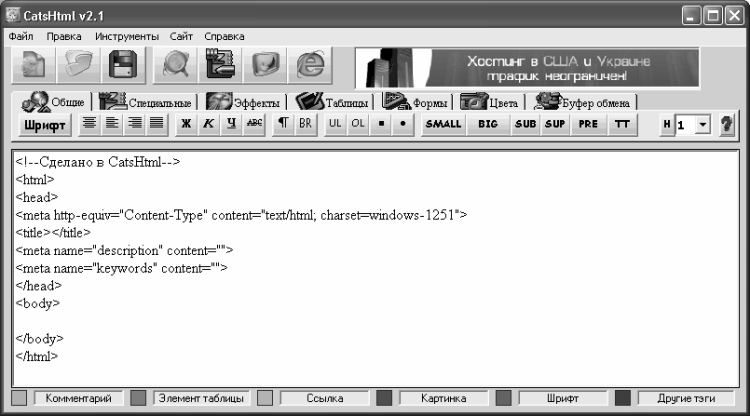 После запуска CatsHtml на экране отображается ее пользовательский интерфейс, который показан на рис. 3.1.
