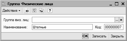 В поле Наименование следует с клавиатуры ввести наименование группы физических лиц.