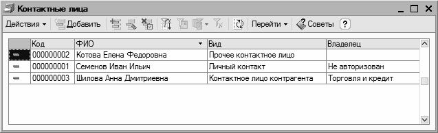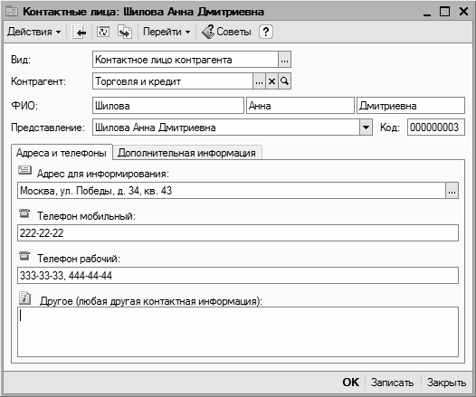 Рис. 2.38. Ввод и редактирование данных о контактном лице