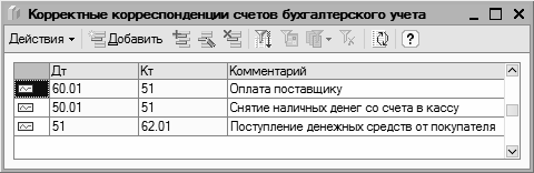 После нажатия в данном окне кнопки ОК на экране отобразится окно Корректные корреспонденции счетов бухгалтерского учета (рис. 3.4).