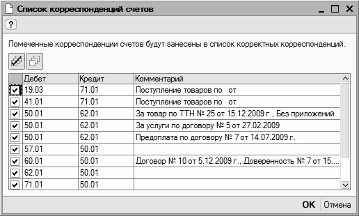 Рис. 3.4. Список корректных корреспонденций счетов