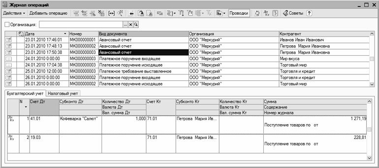 Рис. 3.8. Журнал бухгалтерских проводок