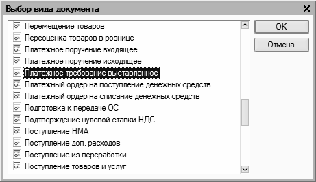 Рис. 3.13. Выбор документа для формирования операции