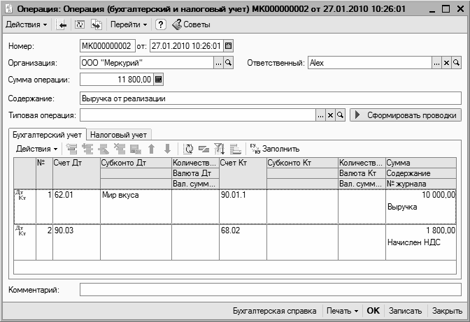 В программе ”1С Бухгалтерия 8” ведутся отдельные журналы проводок для бухгалтерского и налогового учета. Поскольку порядок работы с ними практически идентичен, мы рассмотрим его на примере журнала проводок бухгалтерского учета.