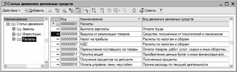 Рис. 2.55. Справочник статей движения денежных средств