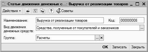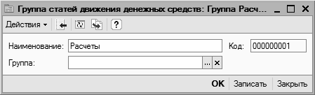 Рис. 2.57. Ввод и редактирование статьи движения денежных средств
