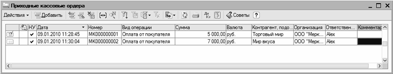 Рис. 4.3. Ввод и редактирование приходного кассового ордера