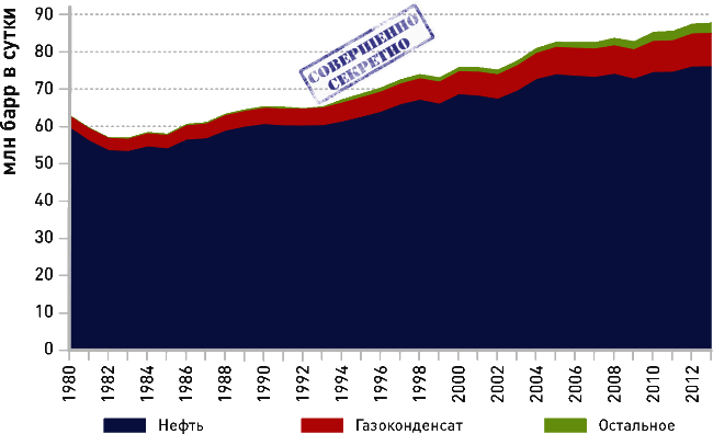 Вот тут и есть первый финт ушами с «пиком нефти». Согласно всем оценкам, пик добычи традиционной нефти мы уже, не заметив того, миновали в 2008–2010 годах. Наше текущее состояние неустойчивого равновесия – это увеличивающаяся добыча конденсата из природного газа, который понемногу замещает нам обычную классическую нефть.