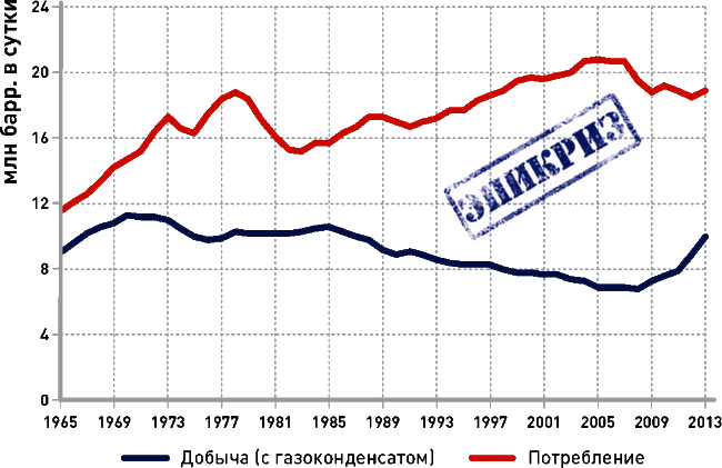 Зависимость от импортной нефти, организованная экономической и инфраструктурной политикой США еще в начале 1950-х годов, никуда не денется. Нефтяной динозавр по-прежнему ест нефти больше, чем добывает из своих скважин.