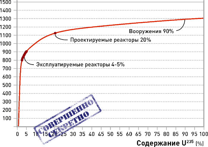 Для этого начальное содержание 235U в природном уране, которое обычно составляет 0,71 % надо увеличить до 2–4 %, то есть всего лишь в 3–5 раз. Задача, как мы увидим, сложная, но отнюдь не неразрешимая.