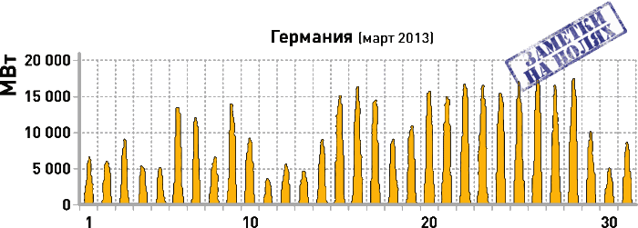 Есть, конечно, пример использования ветра и солнца для компенсации суточных пиков мощности в той же Германии, которая надеялась перекрыть солнцем и ветром неравномерность потребления энергии в своей сети, в чем-то тоже очень показательный.