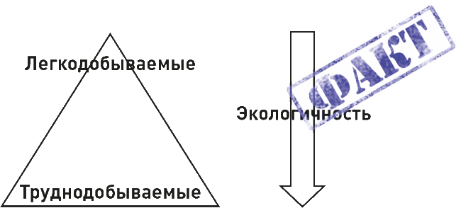 Внизу пирамиды – бедные металлические руды, в которых уже 2 грамма металла на тонну породы, цианиды для получения золота, сланцевая нефть и жидкость для гидроразрыва пласта, истощенные почвы и мегадозы минеральных удобрений, вкусные насекомые и крысы.