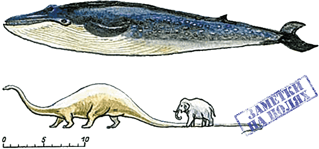 Рис. 159. Синий кит смотрит на слона и диплодока как бы немного свысока.
